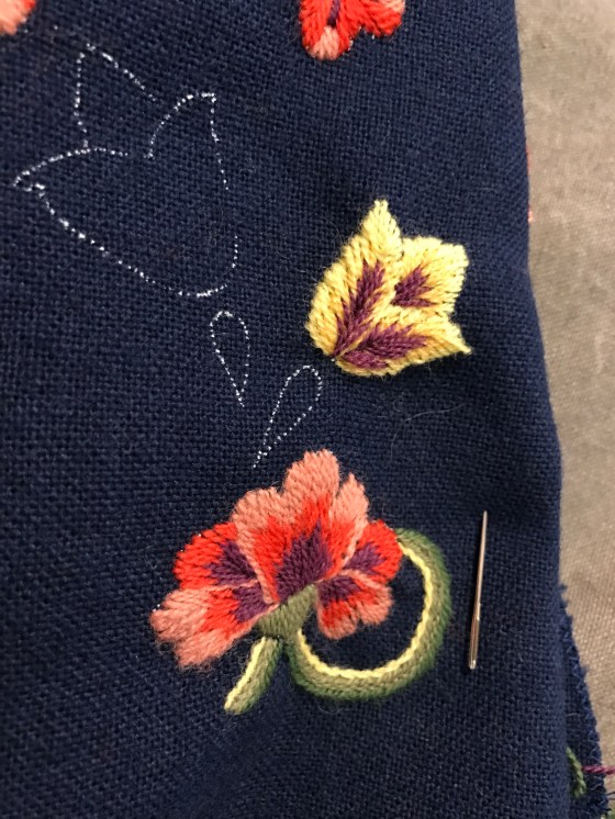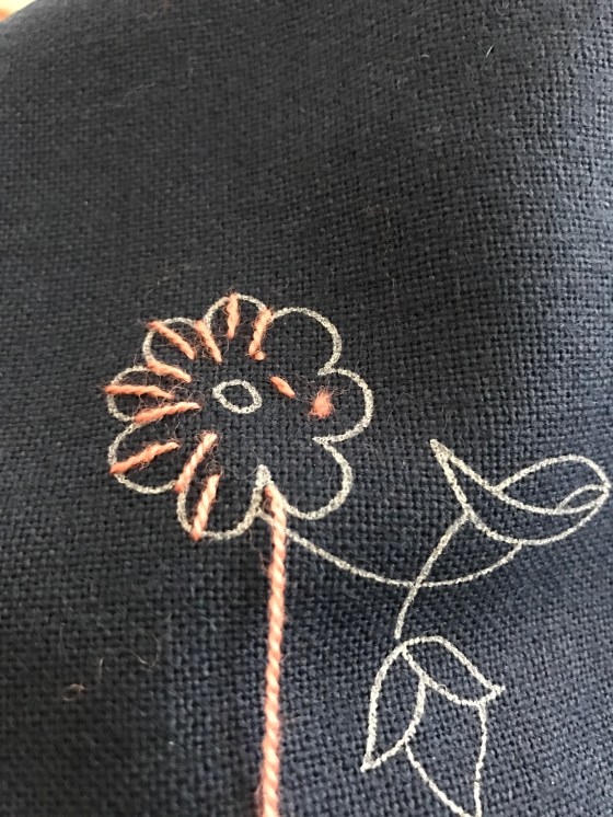 I dag var det tungt å hente fram broderiet. Jeg syr den femte like blomsten. Det er ikke kjedelig, det…